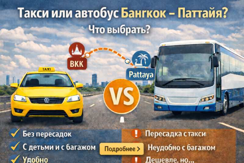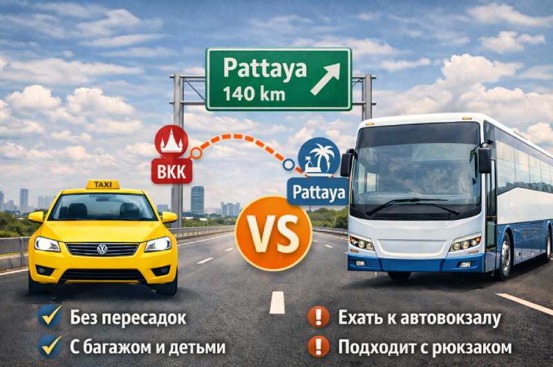 Автобус подходит для бюджетной поездки, но такси выигрывает по удобству, скорости и комфорту. Если вы хотите добраться в Паттайю без лишней суеты — выбирайте индивидуальный трансфер.